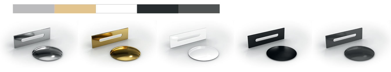 Opcionálisan választható leeresztő és túlfolyó takaró arany, matt fekete, fehér vagy fegyverszürke színben.
