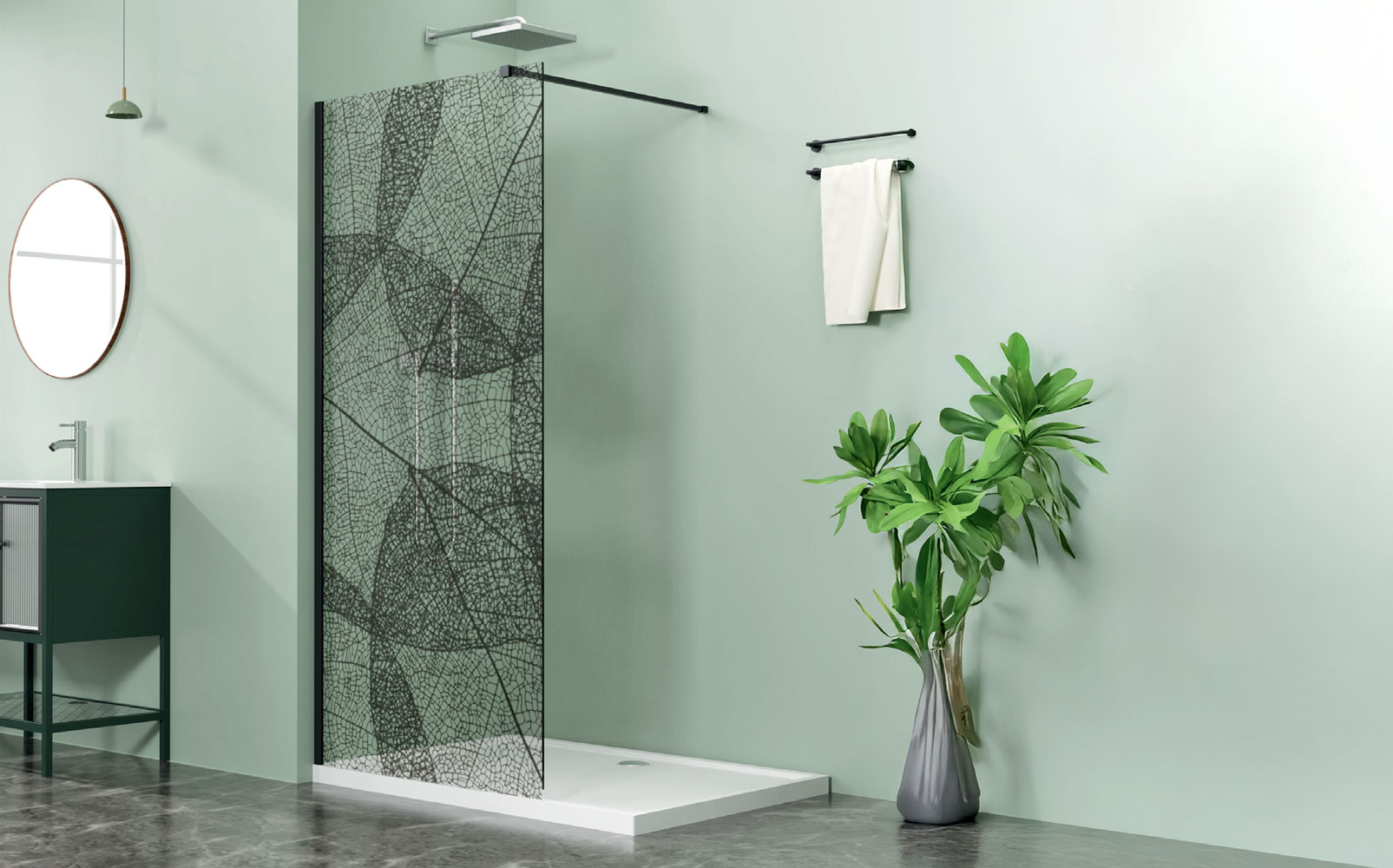 A Niwell Letti Black walk-in zuhanyfal modern és elegáns megoldás a nyitott fürdőszobai kialakítás kedvelőinek. Az UV-nyomtatott levél mintás üveg egyedi megjelenést biztosít, amely természetes és stílusos atmoszférát teremt a zuhanytérben. A 8 mm vastag edzett biztonsági üveg rendkívül tartós és ellenálló, így hosszú távon is megbízható választás.