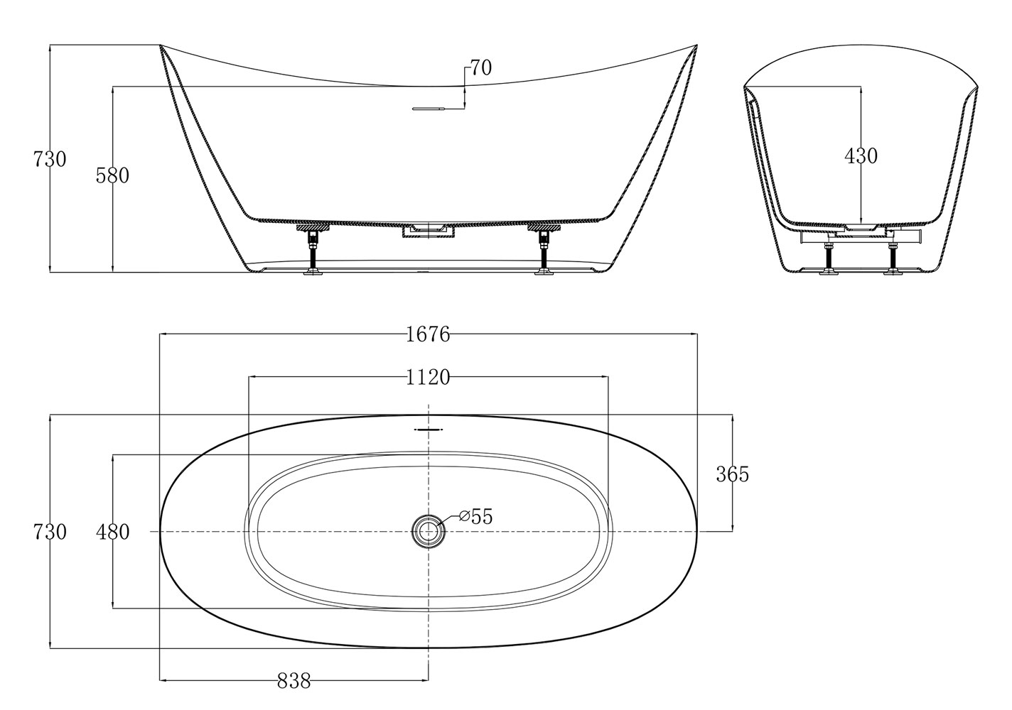 Niwell Lexie matt b&w 168×73 cm szabadonálló kád, matt fekete/fehér NW-KSZ-LEX168-MBWNIWELL