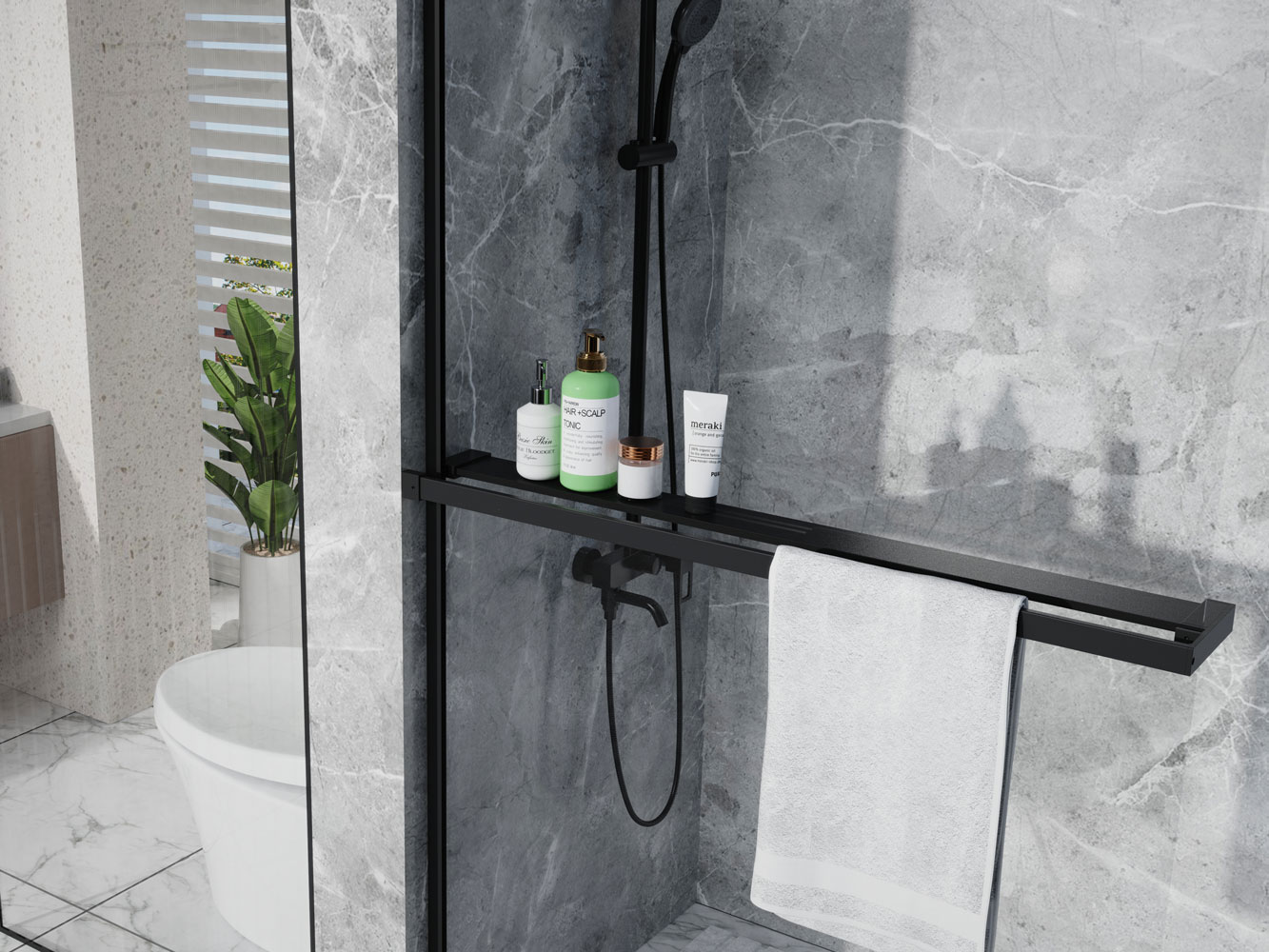 Niwell walk-in polc és törölközőtartó 100 cm, matt fekete NWKIE-WTT100-B