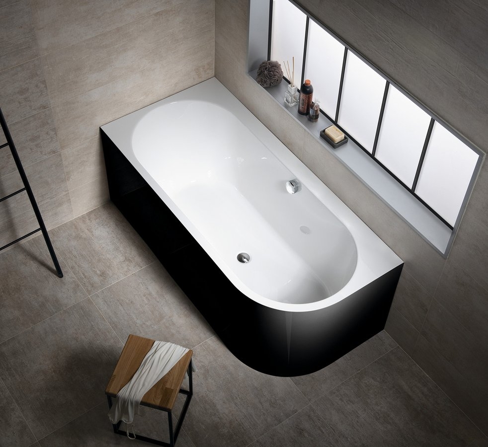 Sapho POLYSAN MARLENE MONOLITH 165x75x63cm kád, balos, lekerekített sarokkal, fekete/fehér 72403MCLB