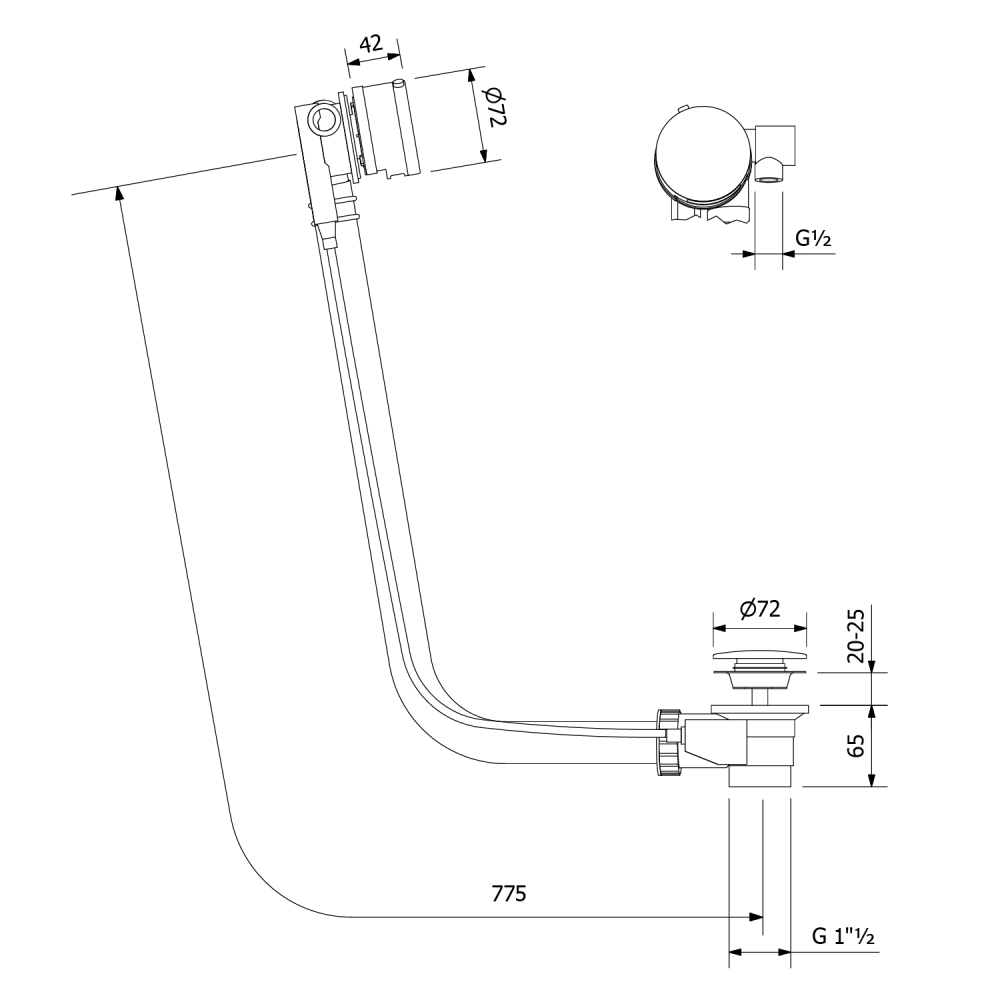 POLYSAN MARBLE kádfeltöltős le- és túlfolyó, bovdenes, 775mm, fehér 11051W