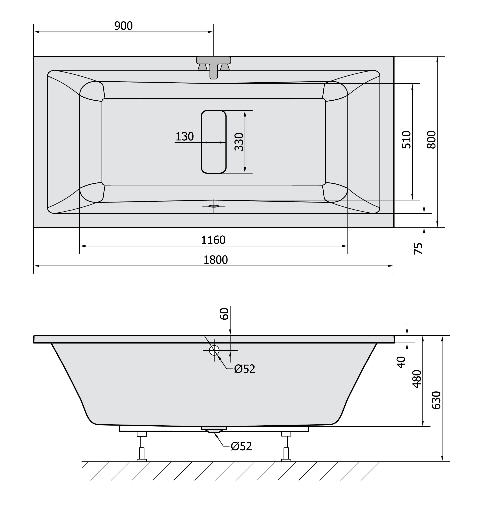 Polysan Dupla 180x120 kétszemélyes egyenes kád (13611)