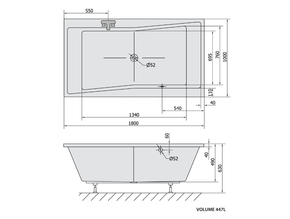 Polysan Dupla 180x120 kétszemélyes egyenes kád (13611)