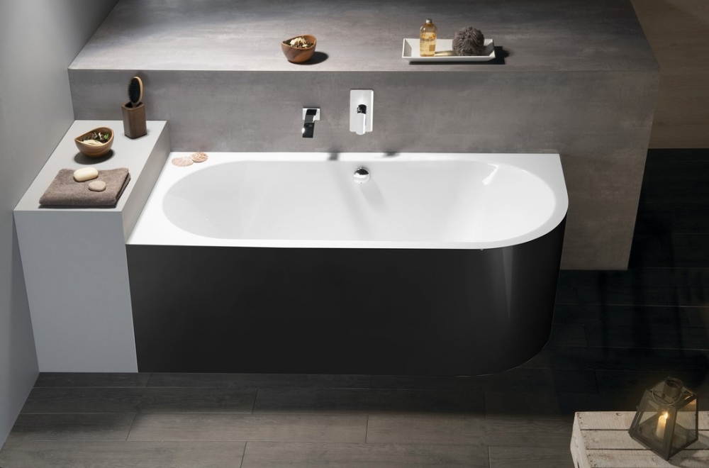 Sapho POLYSAN MARLENE MONOLITH 195x85x63cm kád, jobbos, lekerekített sarokkal, fekete/fehér 78731MCRB