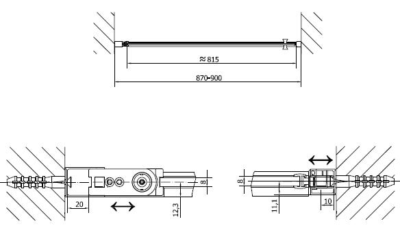 Telepítési méret (két fal között): 885±15 mm, oldalfallal 880 ± 10 mm