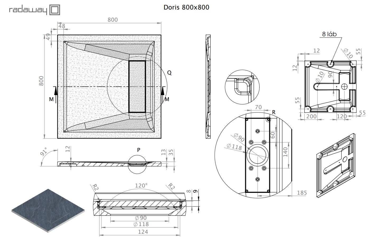 Marmy Dolomite öntött márvány zuhanytálca 90x90 cm, matt szürke 80 7642 90 90 53