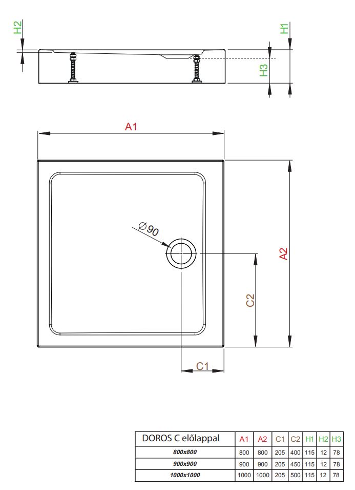 Radaway Korfu C szögletes magasított zuhanytálca (előlapos, 90x90 cm, #4C99400-03)