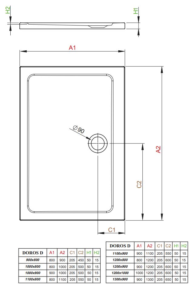 Roltechnik Flat Kvadro téglalap alakú zuhanytálca (80x90 cm, beépíthető, #8000161)
