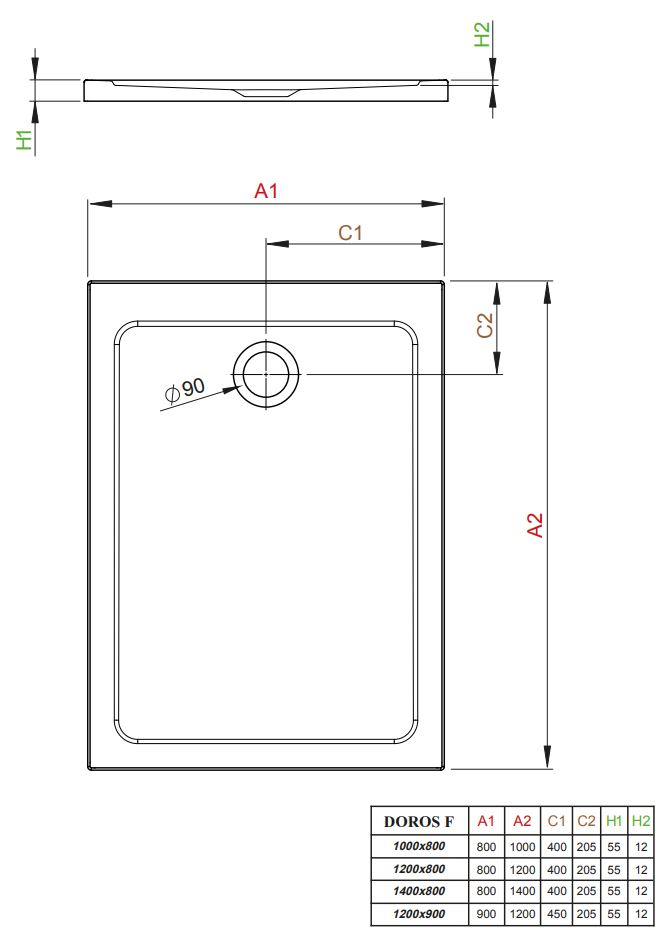 Radaway Doros Stone F 120x90 cm szögletes zuhanytálca, antracit SDRF1290-01-64S