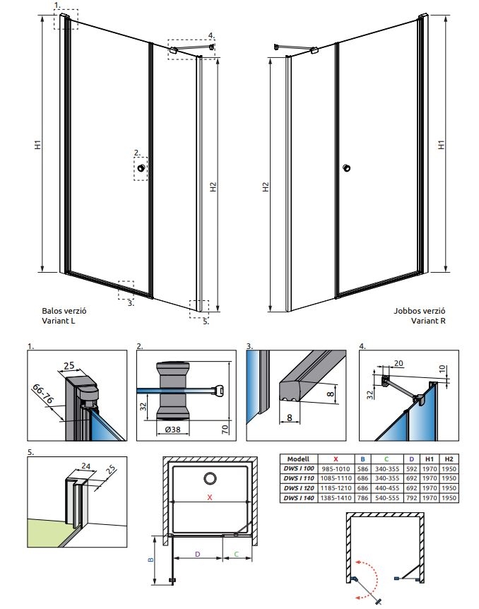 A profilzsanéros kivitelnek köszönhetően a lehető legnagyobb ajtónyílást biztosítja mindenki számára. 6 mm vastag Easy Clean vízlepergető bevonattal ellátott edzett üveggel gyártjuk, mely elsőrendű megoldás vízkőfoltok, lerakódások megakadályozására.