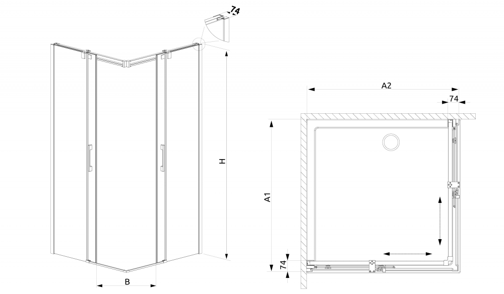 Az ESPERA KDD kabin 2 ajtóból áll: jobbos és balos. Mindkét ajtónak saját termékkódja van. A kabin rendelésekor 2 termékkódot kell megadni.