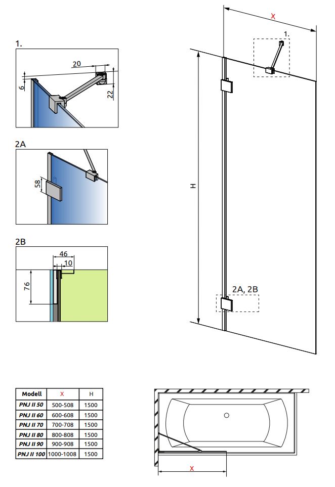 Radaway Essenza Pro White PNJ II 90 kádparaván, fehér 10101090-04-01Radaway