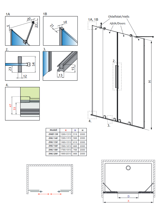 Radaway Espera DWJ 140 B zuhanyajtó (380695-01L, 380214-01L)