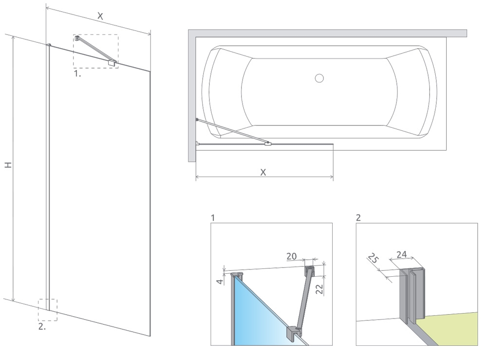6 mm vastag Easy Clean vízlepergető bevonattal ellátott edzett üveggel gyártjuk, mely elsőrendű megoldás vízkőfoltok, lerakódások megakadályozására.