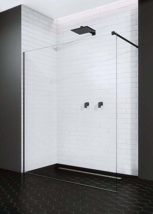 Fali profillal a falra szerelhető pengefal 8 mm-es Easy Clean edzett üvegből.