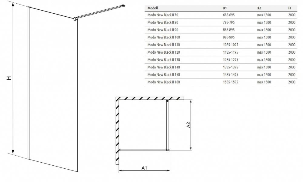 Radaway Modo New Black II 160 Walk-in zuhanyfal 389164-54-01