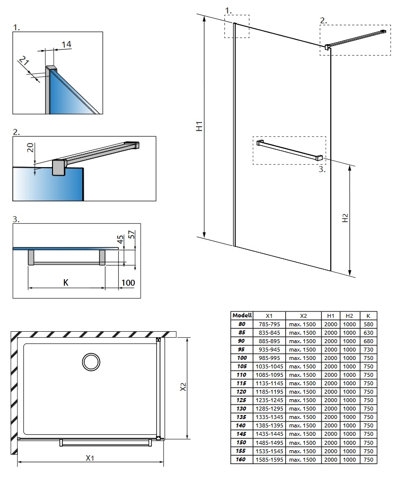 Kellően szabad teret biztosít a zuhanyzáshoz. 8 mm vastag Easy Clean vízlepergető bevonattal ellátott edzett üvegből gyártjuk, mely elsőrendű megoldás vízkőfoltok, lerakódások megakadályozására.