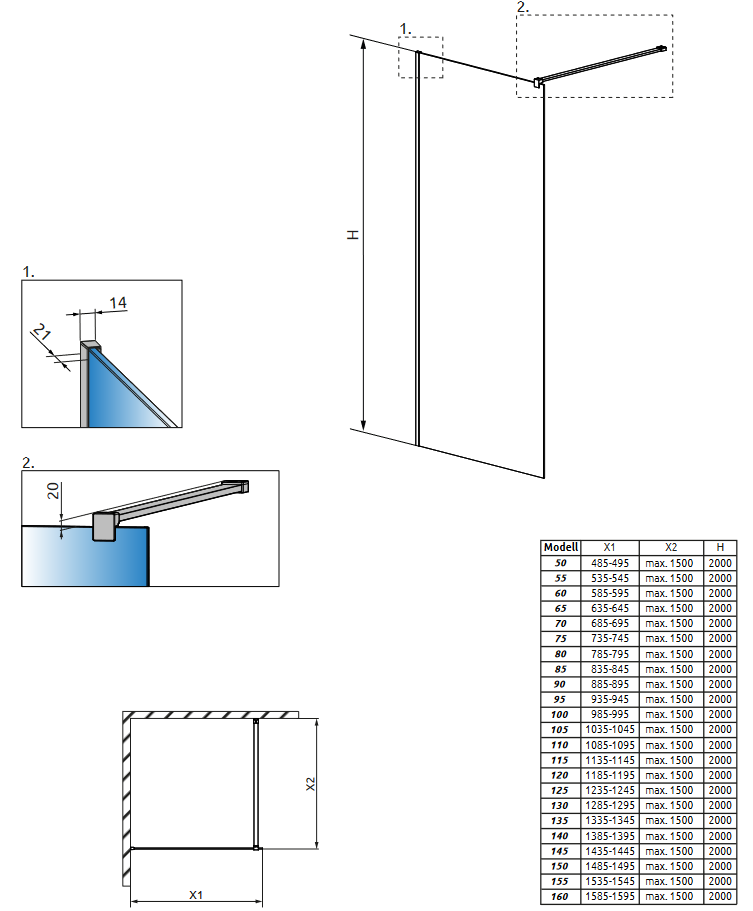 Kellően szabad teret biztosít a zuhanyzáshoz. 8 mm vastag Easy Clean vízlepergető bevonattal ellátott edzett üvegből gyártjuk, mely elsőrendű megoldás vízkőfoltok, lerakódások megakadályozására.