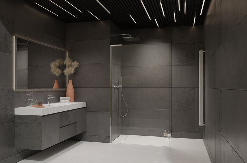 A zuhanytér kialakítása nem zárt minden irányban, ezért a víz szabadon kijuthat a zuhanytérből. (Zuhanykabinjaink az EN 14428:2008+A1 szabványnak megfelelően vízbiztosak.)