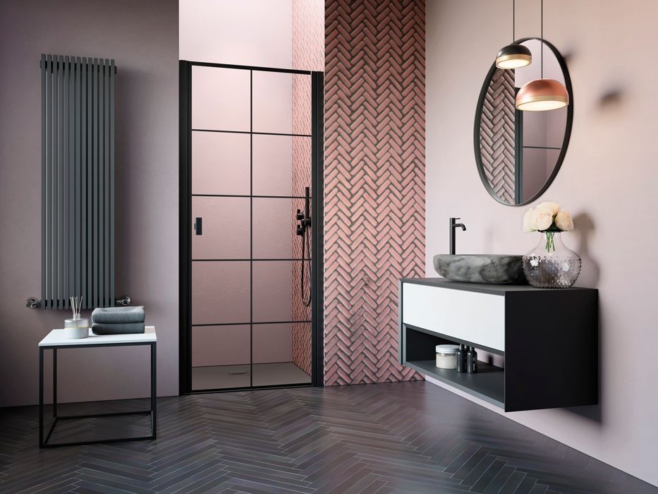 Lengőajtós kivitelű zuhanyajtó maximális belépő szélességgel.