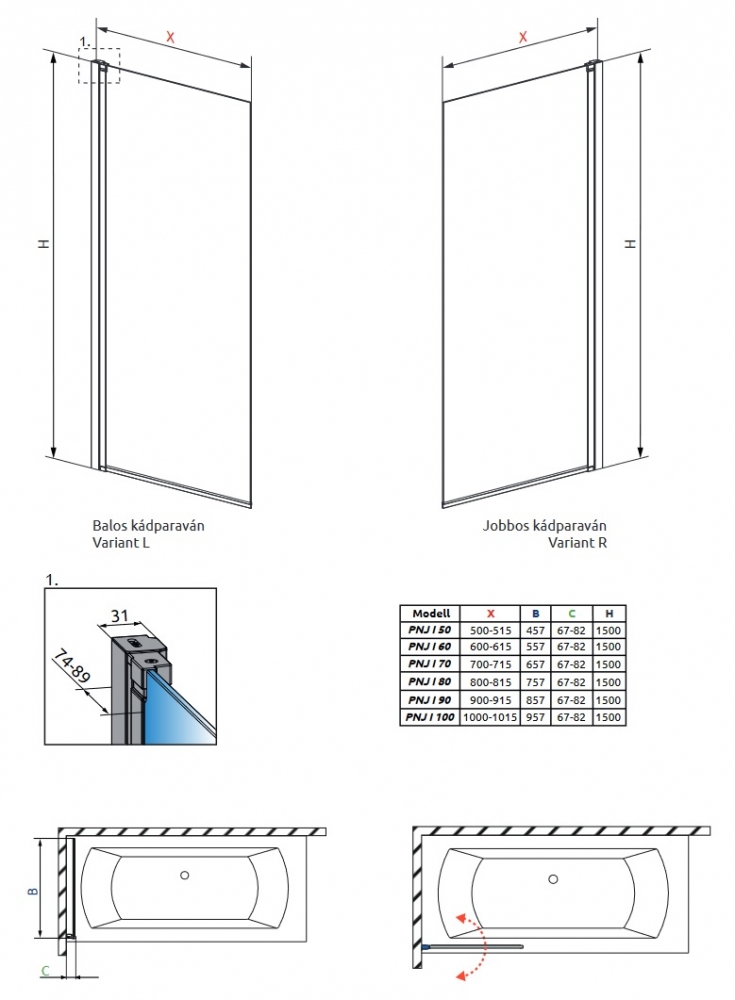 50-től akár 100 cm széles kifelé – befelé nyitható kádparaván.