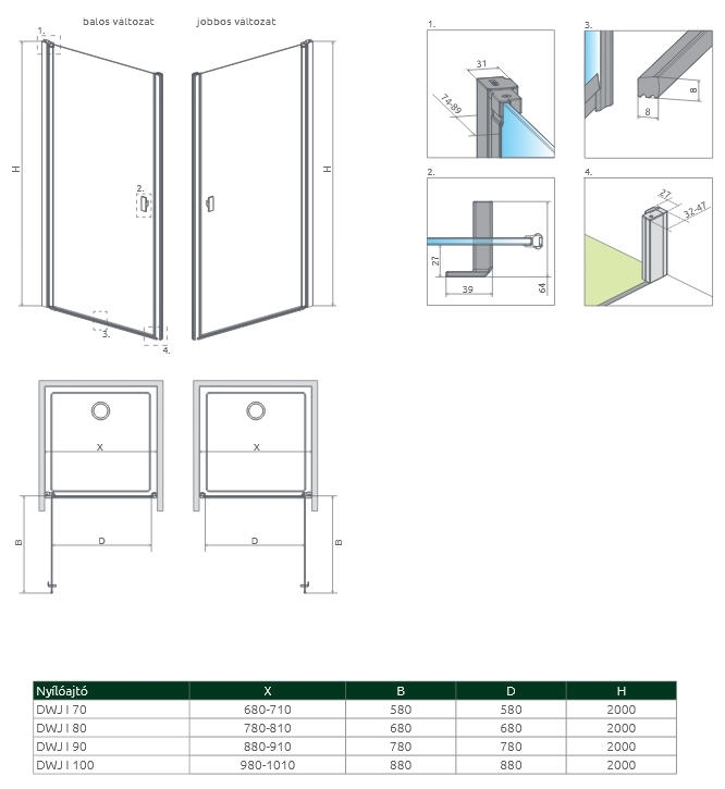 A profilzsanéros kivitelnek köszönhetően a lehető legnagyobb ajtónyílást biztosítja mindenki számára. 6mm vastag Easy Clean vízlepergető bevonattal ellátott edzett üveggel gyártjuk, mely elsőrendű megoldás vízkőfoltok, lerakódások megakadályozására.