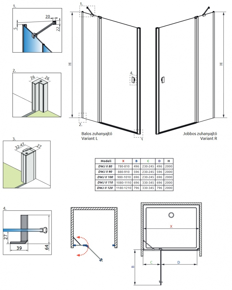 A profilzsanéros kivitelnek köszönhetően a lehető legnagyobb ajtónyílást biztosítja mindenki számára. 6mm vastag Easy Clean vízlepergető bevonattal ellátott edzett üveggel gyártjuk, mely elsőrendű megoldás vízkőfoltok, lerakódások megakadályozására.