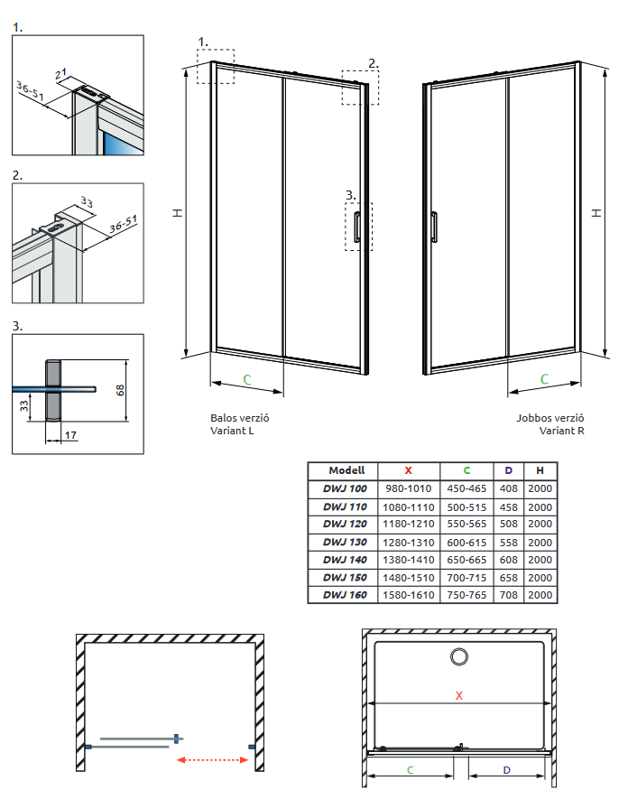 6 mm vastag edzett biztonsági üveges ajtó, kiakasztható kivitel, mely megkönnyíti a tisztítást.