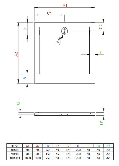 Radaway Giaros C 90x90-es öntött márvány szögletes zuhanytálca szifonnal (MKGC9090-03)