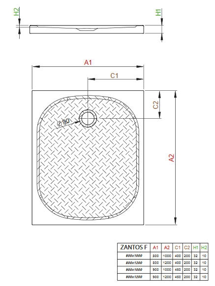 Radaway Zantos F 120x90 cm szögletes öntöttmárvány zuhanytálca M3ZNF1290-06