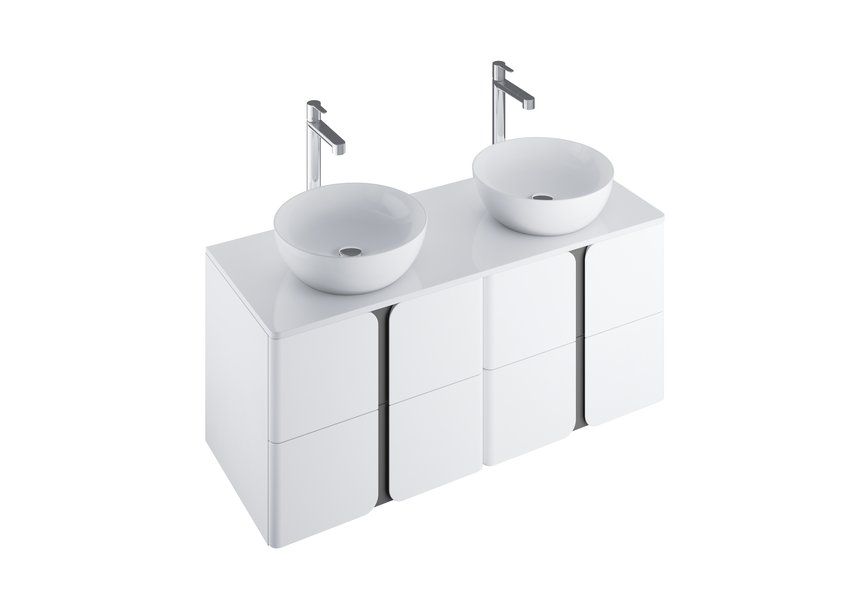 A lakkozott és vízálló Balance 1200, mélyimpregnált mosdópultot magasfényű fehér színben kínáljuk. Rögzíthető egy SD Balance 500, SD Balance 600, vagy akár két SD Balance 600 falra helyezhető szekrényre, rendelkezésre áll fehér/fehér vagy fehér/grafit kivitelben. Mosdó, vagy csaptelep számára nincs előfúrt nyílás. Ez lehetővé teszi, hogy a pultra rá lehessen szükség szerint helyezni egy mosdót (csak egy középen elhelyezett szekrénnyel) és egy álló csaptelepet. A lap szekrénnyel való kombinálásával nagy tároló- és rakodóterület keletkezik.