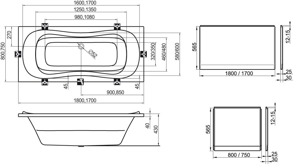Polysan Dupla 180x120 kétszemélyes egyenes kád (13611)