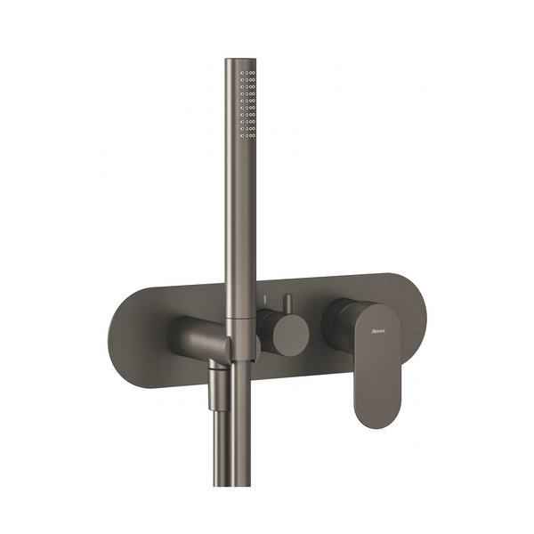 Ravak Eleganta EL 068.20GB.O3.RB07D.+S Falba süllyesztett csaptelep szettel, háromutas, belső egység nélkül, Graphite Brushed X070333