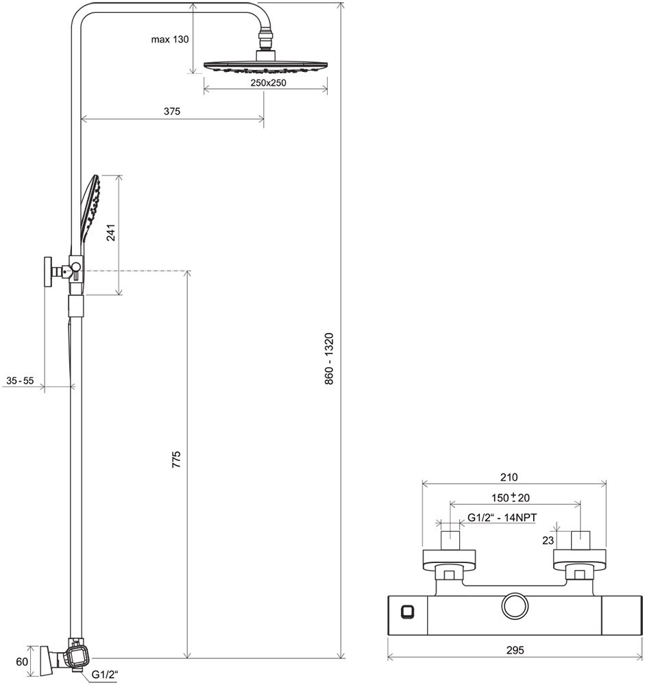 hőoszlop magassága: rugalmas - 86-132 cm közötti tartományban állítható