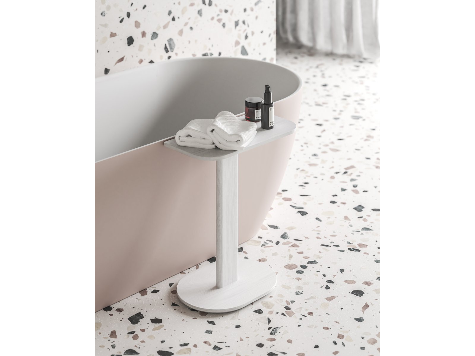 Fa asztal , amely formájával és magasságával tökéletesen kiegészíti a különböző árnyalatú térben álló kádakat. Praktikus tárolóhelyet biztosít, és egyben ízlésesen kitölti a fürdőszoba terét. Szétszerelt állapotban szállítjuk, összeszerelési kulccsal.