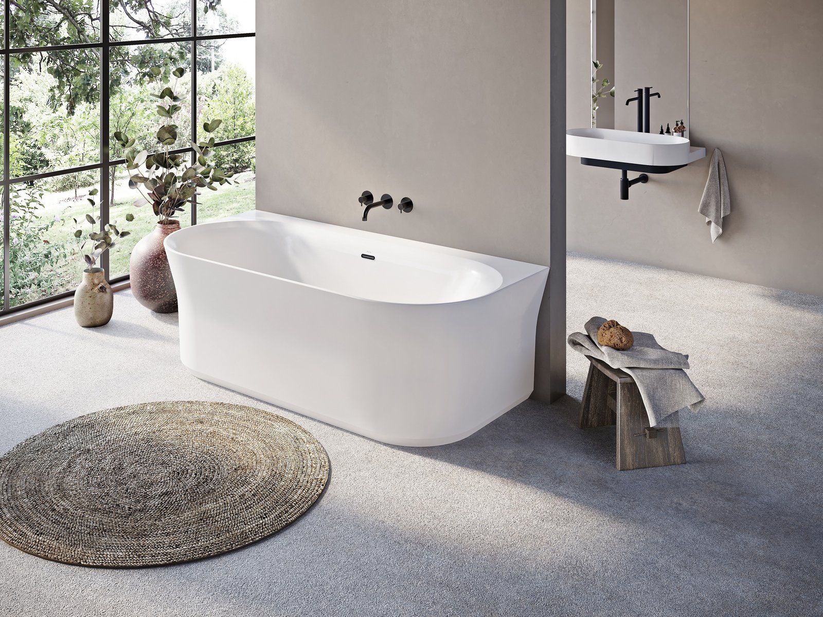 Romantikus játék a sziluett és a háttér között. Ezt hozza az Ypsilon Wall, elegáns szabadon álló kádunk falhoz való változata. Széles peremmel. És tökéletes ergonómiával a relaxációhoz.