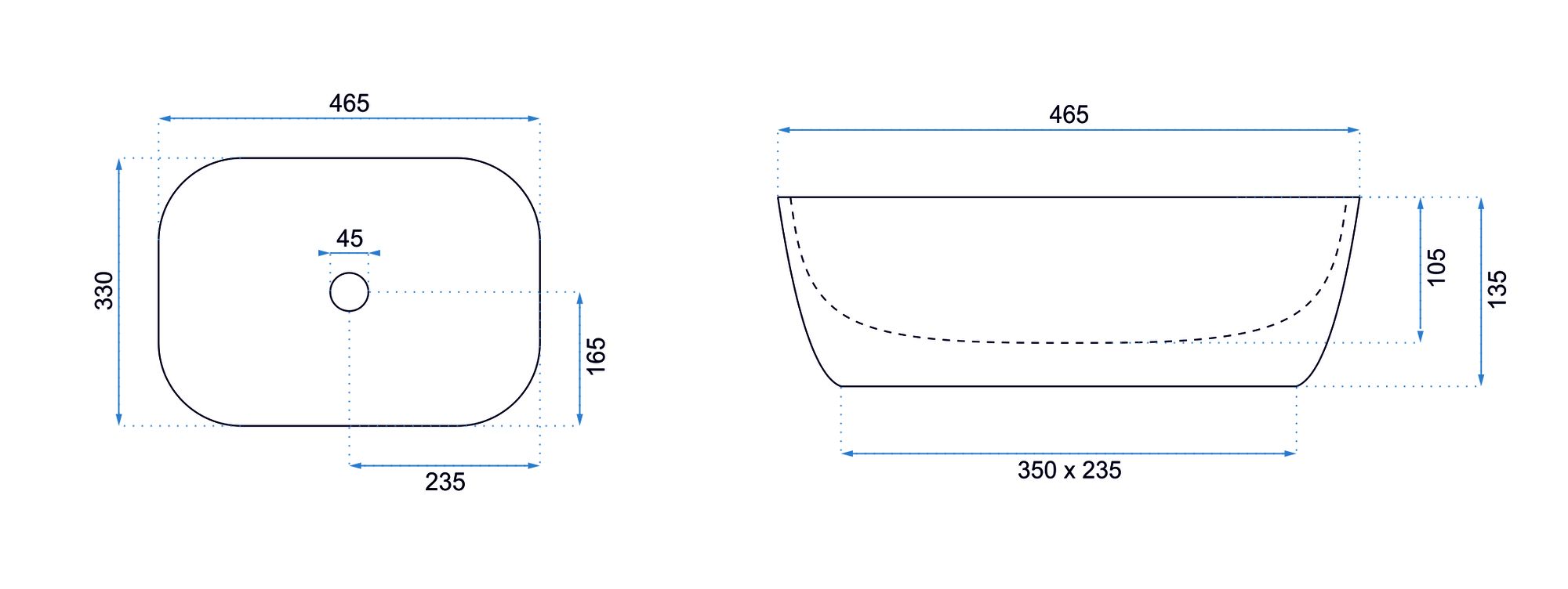 Rea Belinda Slim 46,5x33 cm pultra ültethető mosdó, fehér REA-U6521Rea