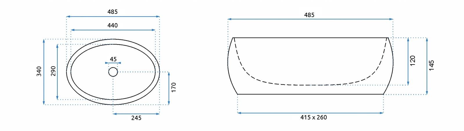 REA Kate 36 pultra ültethető mosdó 36,5x24,5 cm REA-U6803