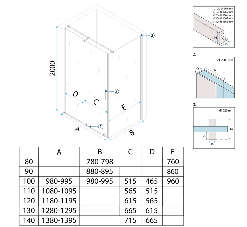 Polysan EASY LINE 80x90 cm-es szögletes zuhanykabin (EL5315)