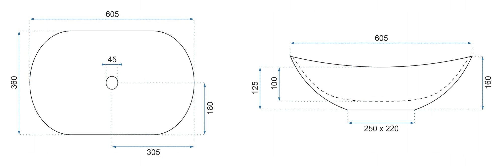 LAVEO VELA pultra szerelhető gránit mosdó 34x20 cm, éjkék VGV1N10T
