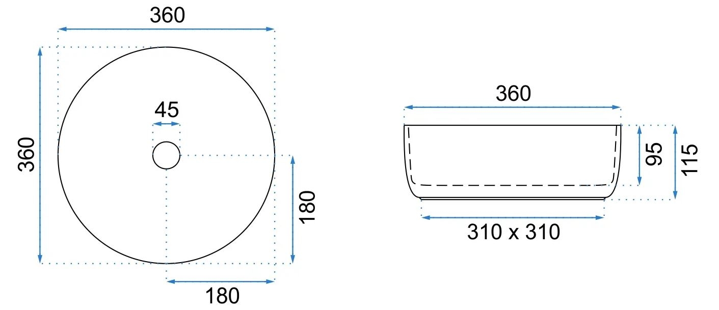 Rea Aura 61 L.Blue Shiny pultra ültethető mosdó 61x41 cm, kék REA-U6618