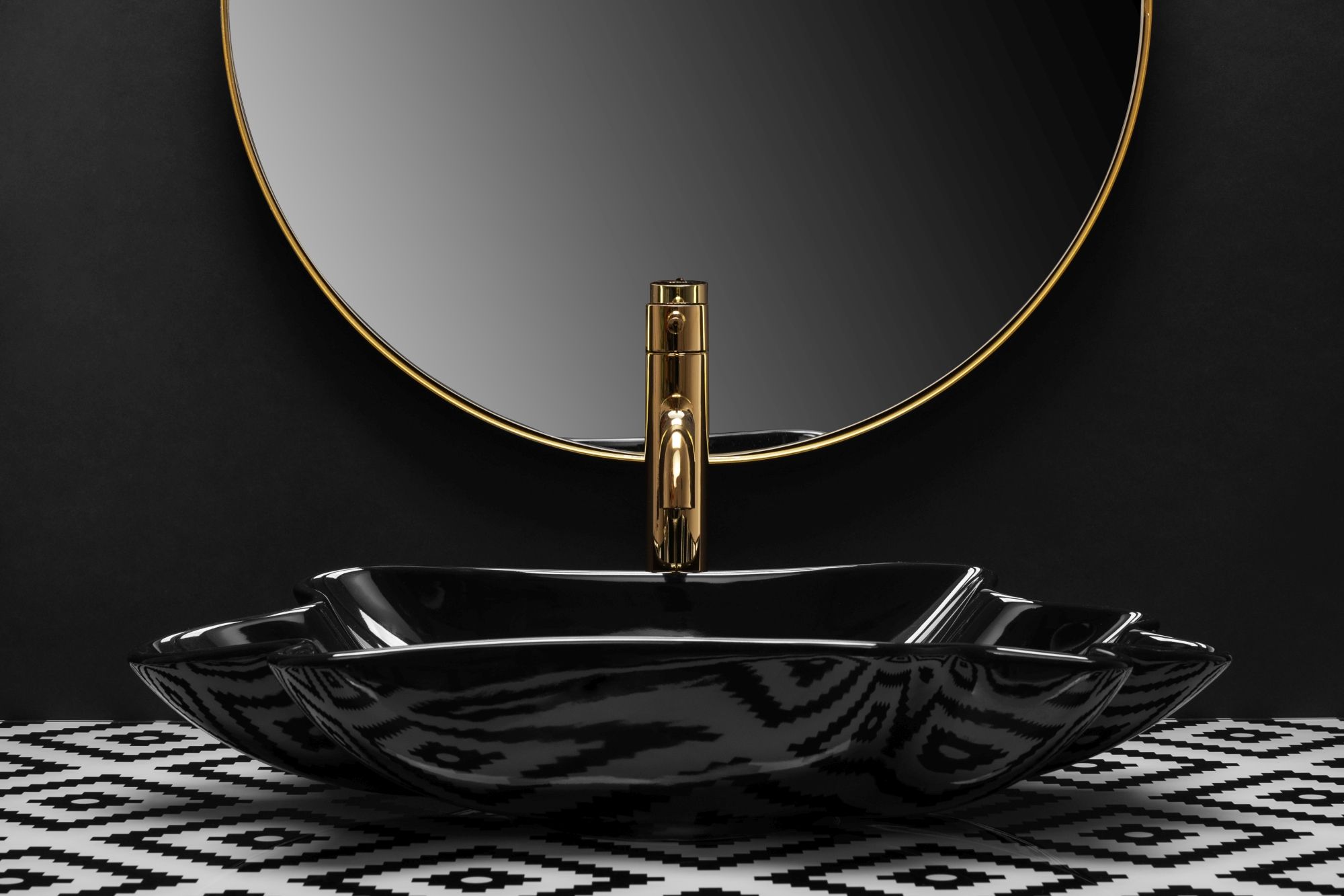 Invena MALAGA pultra ültethető mosdó 39x39 cm, fényes fekete/arany szín CE-39-027-C