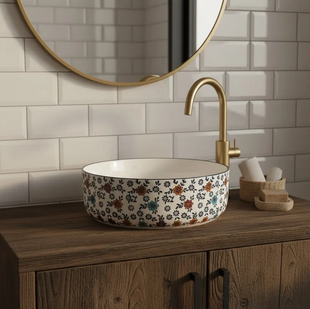 Szeretnél egy mosdót, ami a fürdőszobád igazi dísze lesz? Fedezd fel a Rea Stefania pultra szerelhető mosdótálat, amely ötvözi a matt felületet és az egyedi, színes virágmintát. A kiváló minőségű szaniterkerámiából készült, kerek mosdó tökéletes választás azoknak, akik szeretik a rusztikus dizájnt és a prémium kidolgozást.