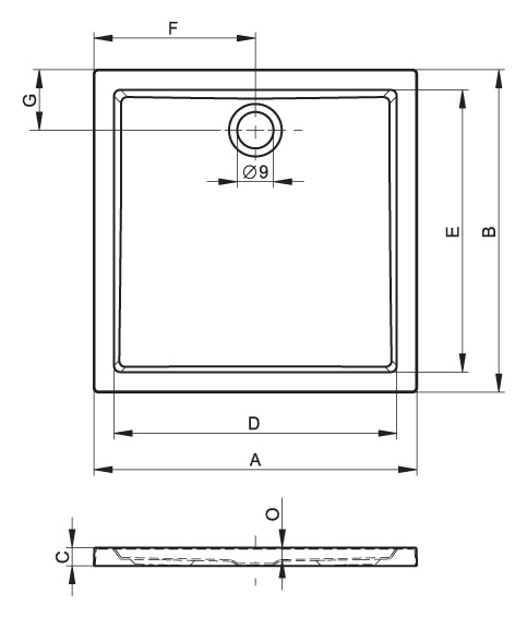 Riho 249 80x80x4,5 előlapos akril zuhanytálca lábbal és előlappal (DA57) Rendelhető 90mm-es szifon