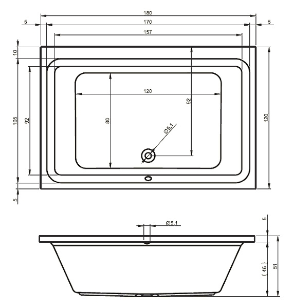 Polysan Dupla 180x120 kétszemélyes egyenes kád (13611)