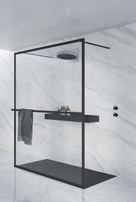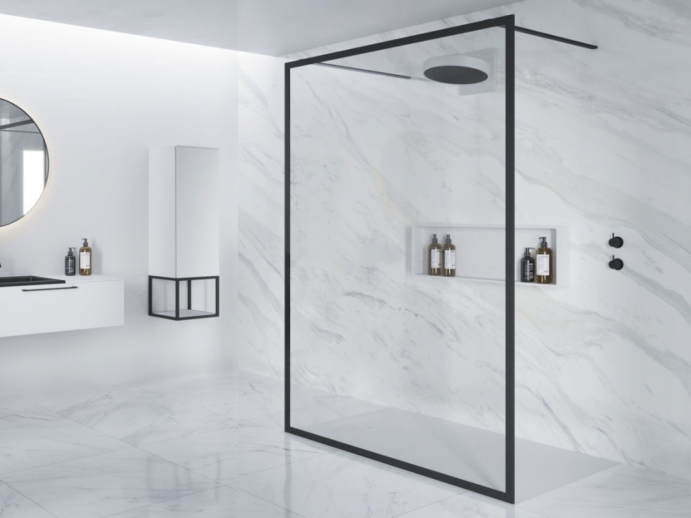 Térben elhelyezhető walk-in zuhanyfal. Két oldalról szabad belépés!