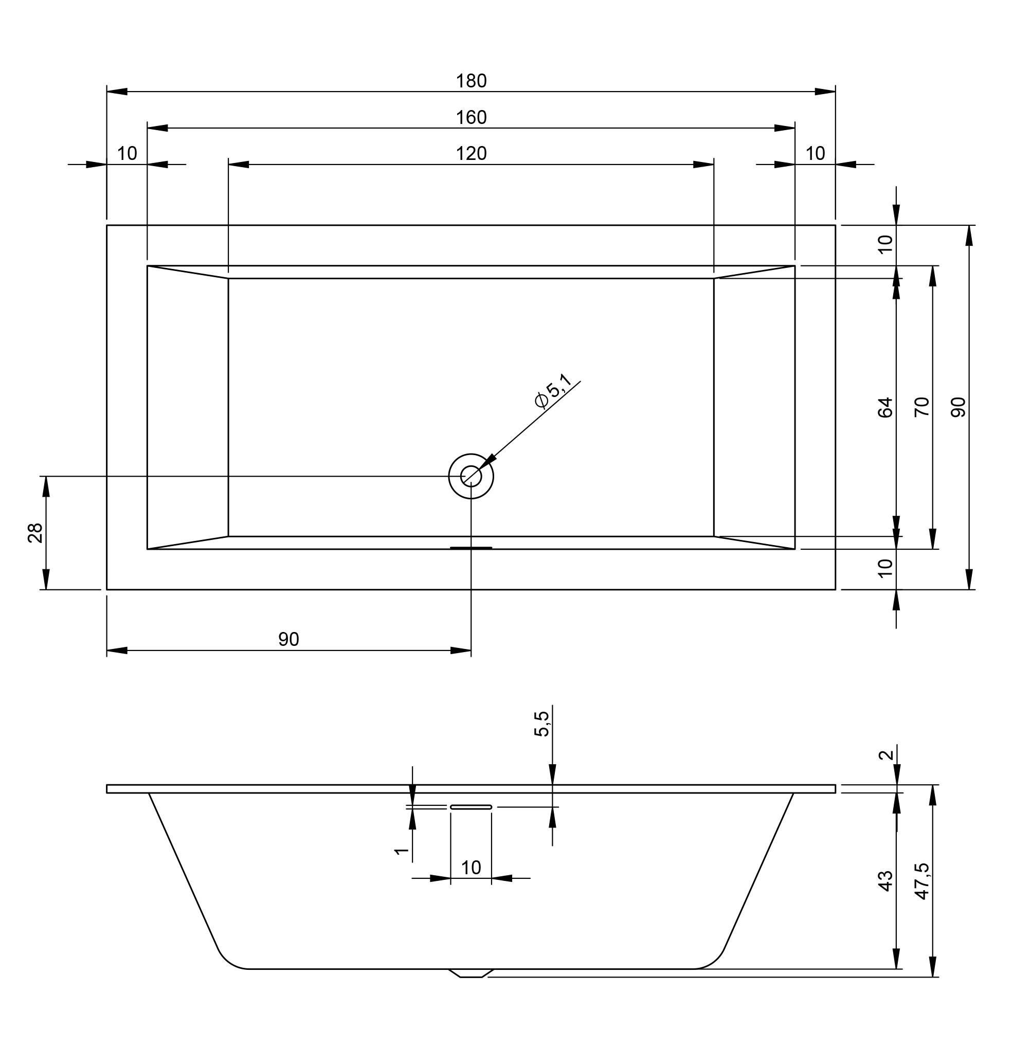 Riho Rethink Cubic 180x90 cm egyenes kád B107001005Riho