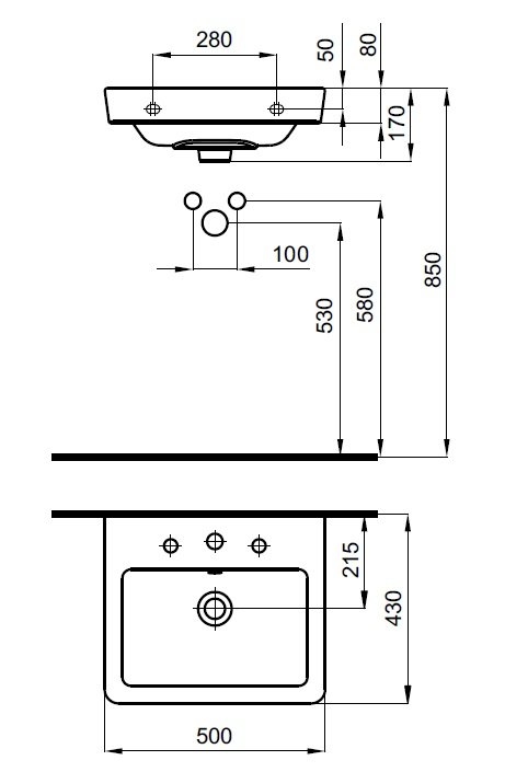 Roca Caserta pultra ültethető vagy falra szerelhető mosdó 50x43 cm A3270J3000 Kosárba -+