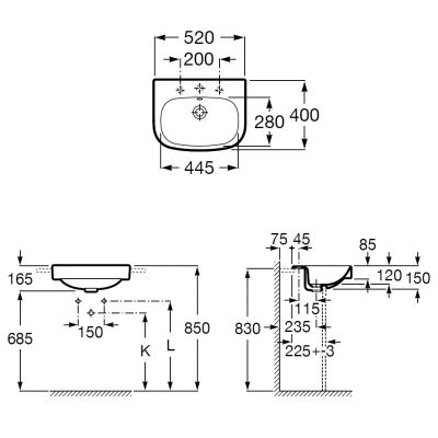 Roca Debba félig besüllyeszthető mosdó 52x40 cm A32799S000